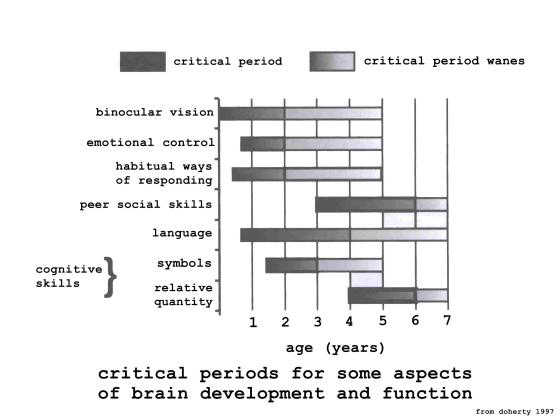 Cognitive development is at a peak during early childhood. During this phase children are in a sense being ‘hardwired’ for life, with a mass of connections being made as they learn language, logic and social skills. Because of this, they are highly receptive to learning, particularly learning related to music. Children are focussed on issues of pitch, timbre, tone and meter in listening to people speak to them. They need this heightened awareness as they learn language, and this receptiveness gives them a natural love of music. Learning music reinforces their development in these areas as well.